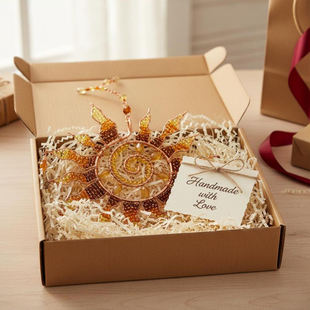 This handcrafted sun suncatcher transforms ordinary daylight into a warm golden glow — filling your kitchen, bedroom, or living space with charm, comfort, and positive energy.